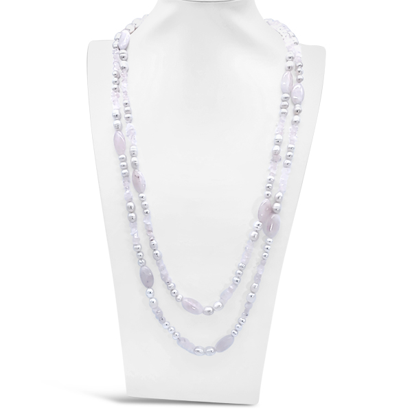 6-8MM PINK PEARL AND 11X20MM ROSE QUARTZ