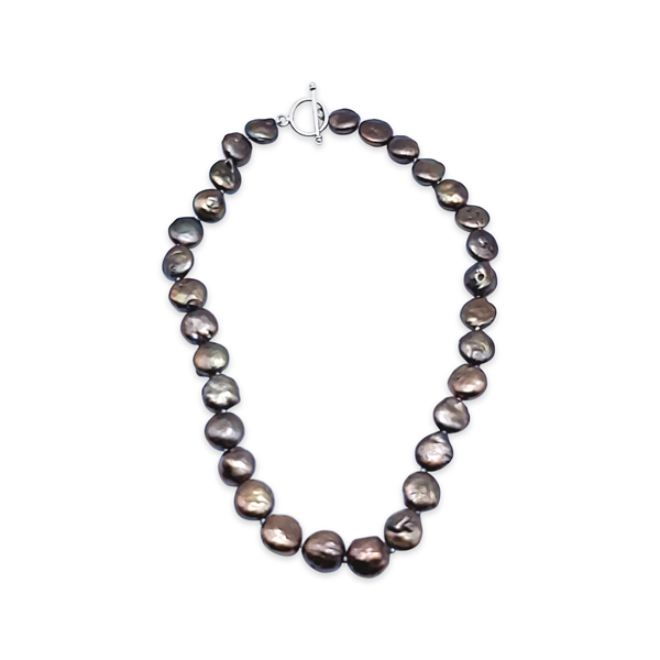 BAROQUE CHOCOLATE COIN PEARL NECKLACE