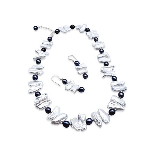 BIWA PEARL NECKLACE AND EARRING SET