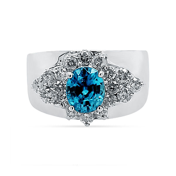 2.00CT BLUE ZIRCON, 1.00CTTW SI DIAM, 14KW, SZ 7.25