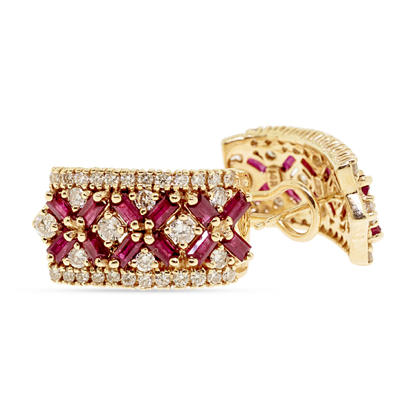 DIAMOND, RUBY, 14KT YG OMEGA BACK