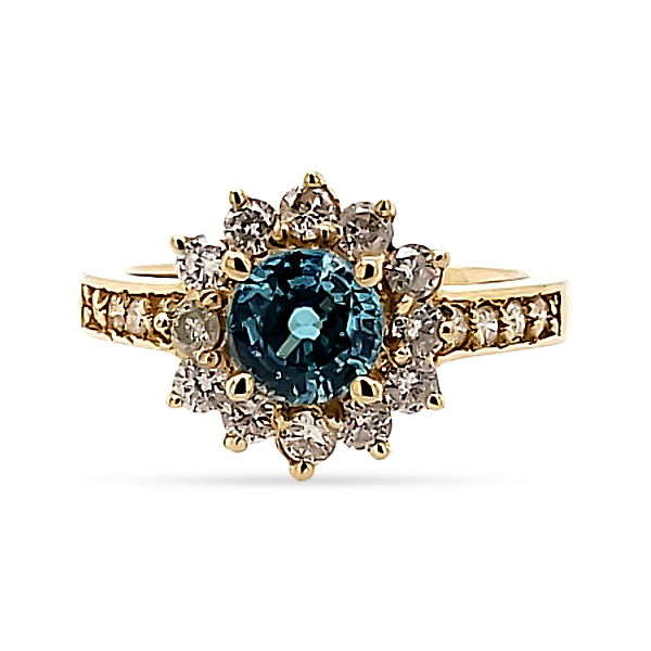 BLUE ZIRCON 1.90CT, .75CTTW SI DIAM, 14KY SZ 7.5
