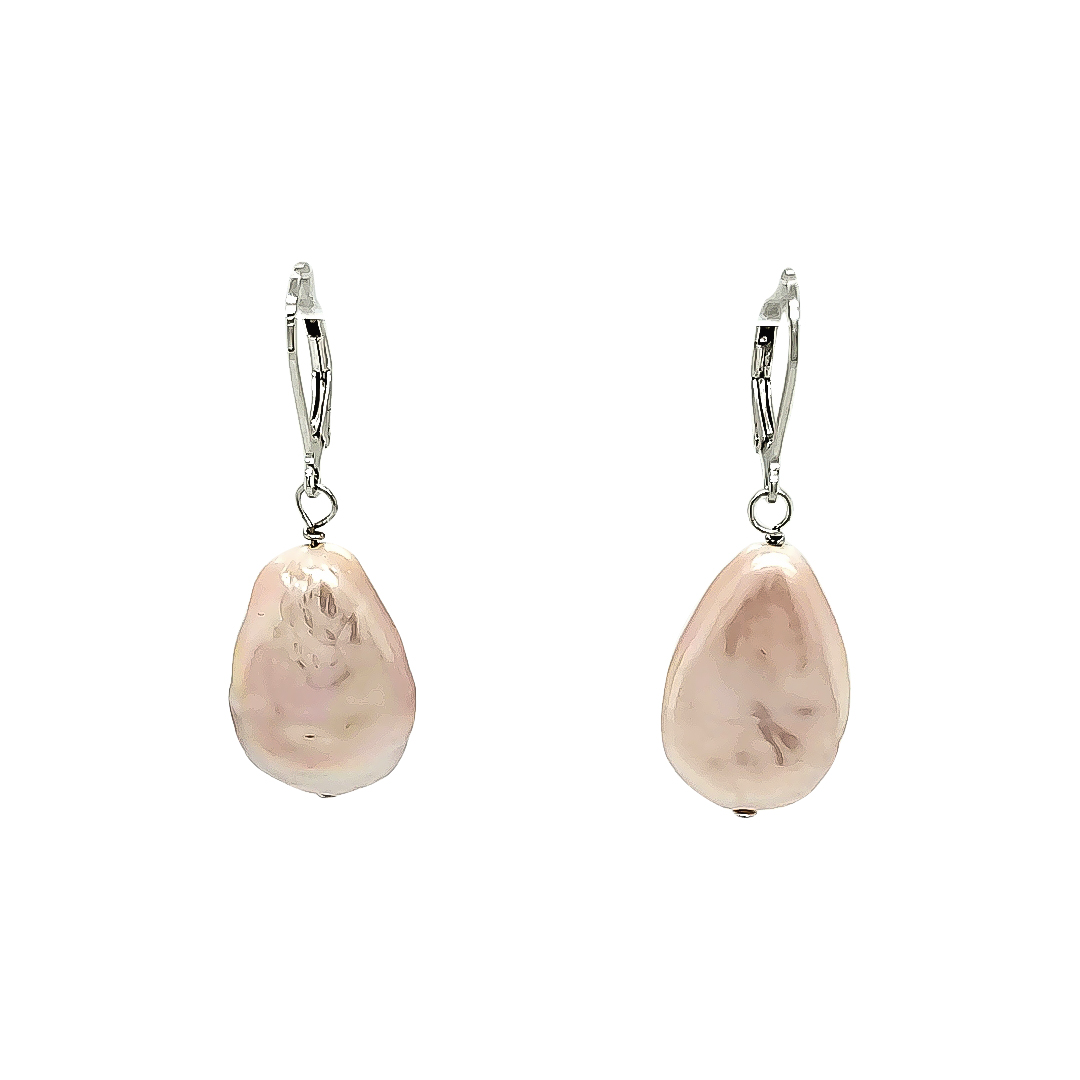 FANCY SHAPE WHITE COIN PEARL EARRINGS