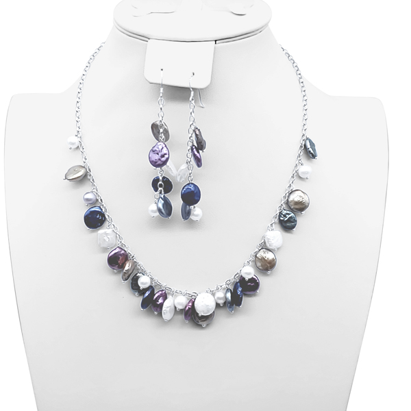 MULTICOLOR PEARL NECKLACE AND EARRING SET