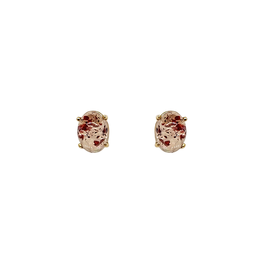 STRAWBERRY QUARTZ STUD EARRINGS 3.00 CTTW STRAWBERRY QUARTZ 14KT YELLOW GOLD POST AND FRICTION BACK 6x 4 mm