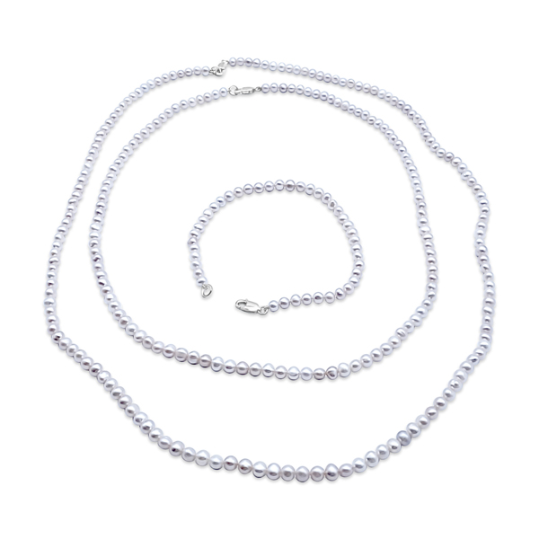 PEACHY PINK PEARL NECKLACE AND BRACELET SET
