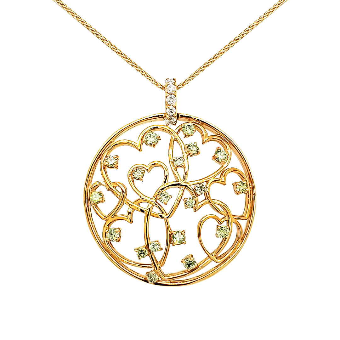 RUSSIAN DEMANTOID GARNET PENDANT 1.10 CT DEMANTOID GARNET .15CTTW DIAMOND SI 14KY 1.75″ DIAMETER *CHAIN NOT INCLUDED