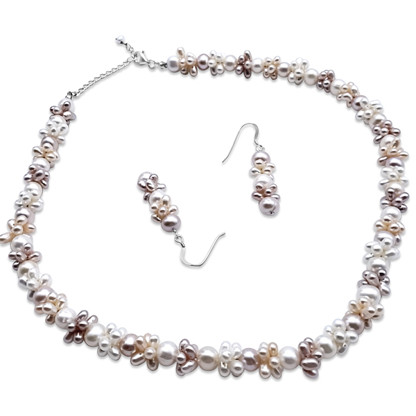 PINK,PEACH AND WHITE PEARLS AND EARRING SET