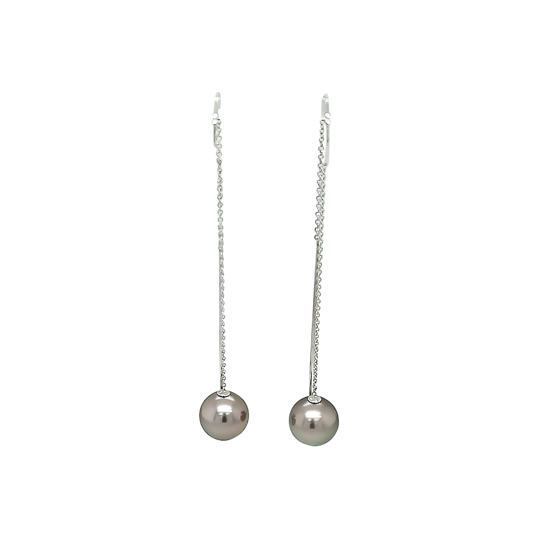 SILVER TAHITIAN PEARL EARRINGS THREADER STYLE 8MM SILVER PEARL 2″ APPROX LENGTH