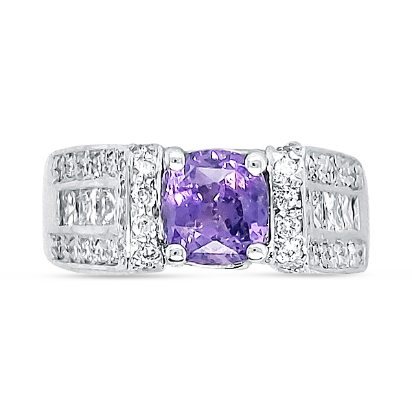 1.62 PURPLE SAPPHIRE AND 1.20CTTW VS DIAM, 18KW, SZ 8